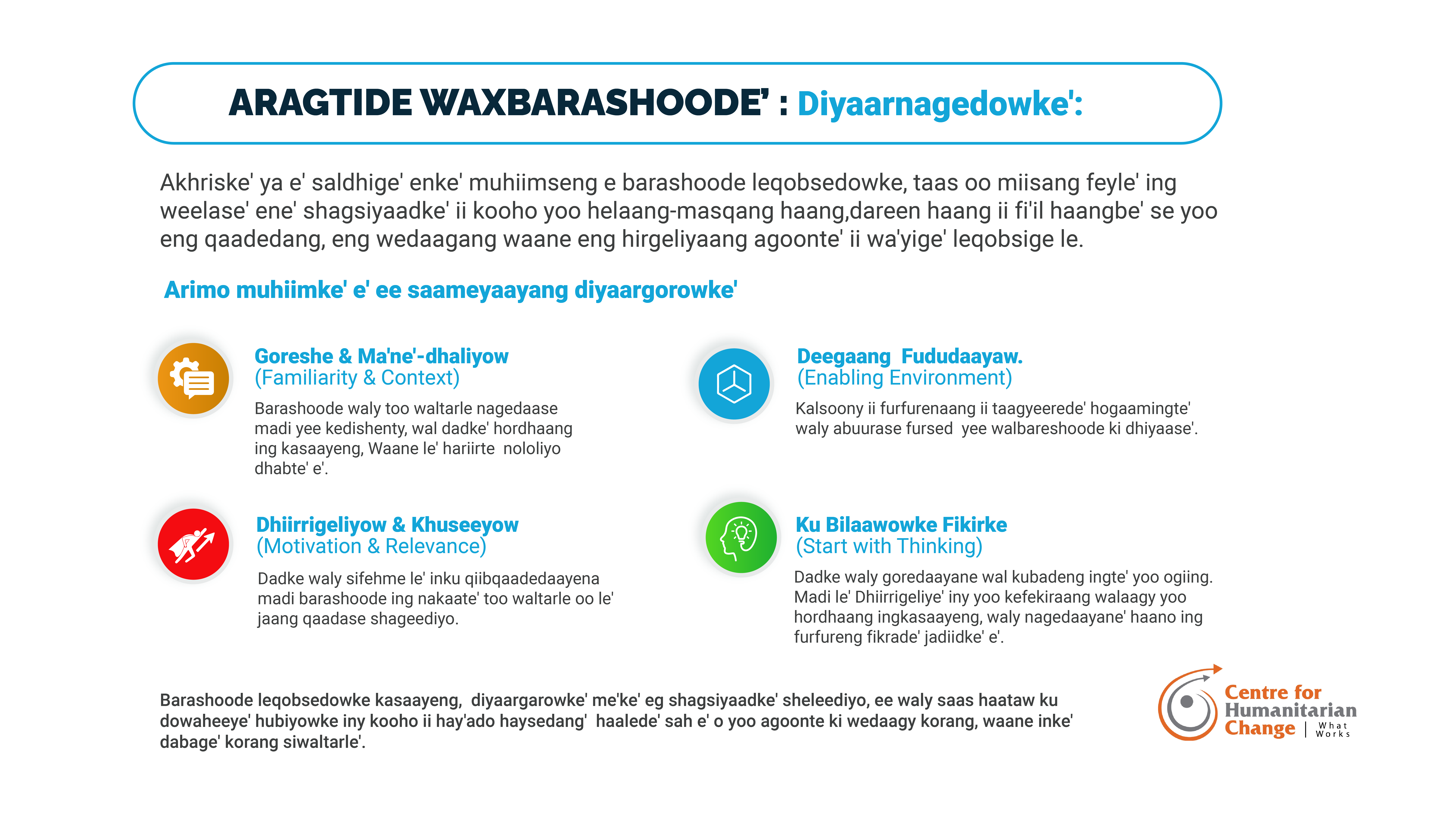 Jowe' dhiirrigeliyaw waly agoonte qarseng ee shakhse'ga e'ng beddelye, koo le' fi'il wadajer e, use' oo abuuraw haale'd ke' habboong e'ny aragtiyo le' qiibse'de', le tijiibiye', yeedo se' toos e liing hirgeliyaaw.