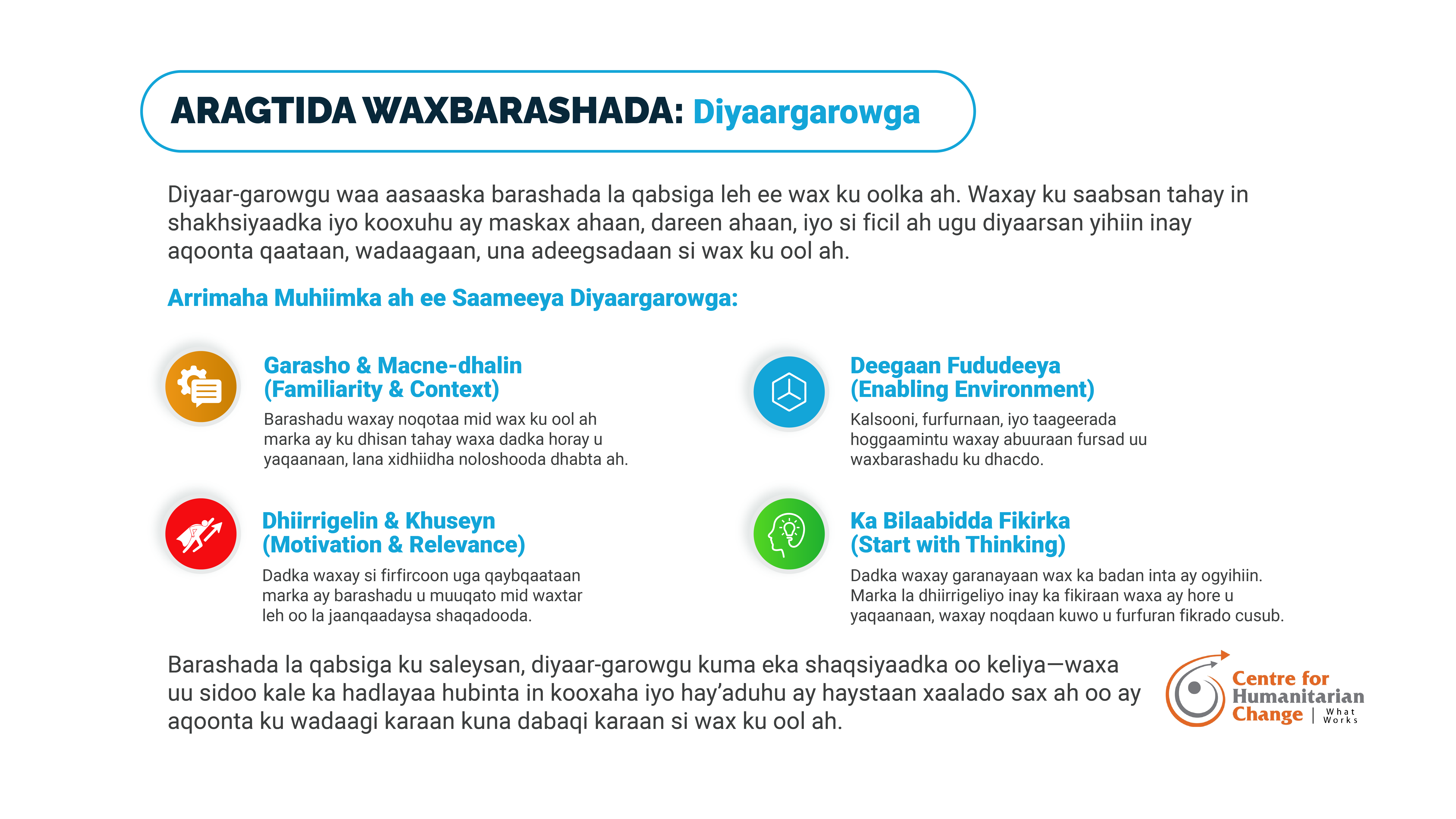 Horumarinta hoggaaminta ku saabsan fududeynta adeegsiga aqoonta waayoaragnimo ku dhisan